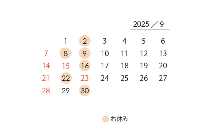 9月のお休みがきまりました